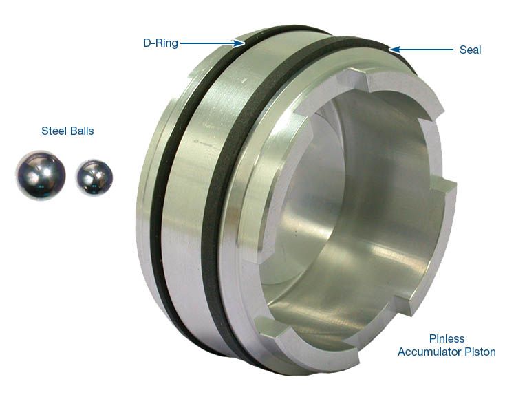 - Pinless design eliminates the possibility of pin bore leakage and the additional length stabilizes the piston to prevent piston cocking